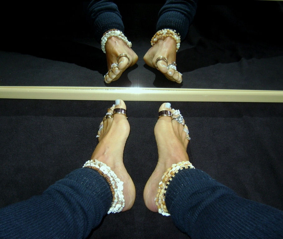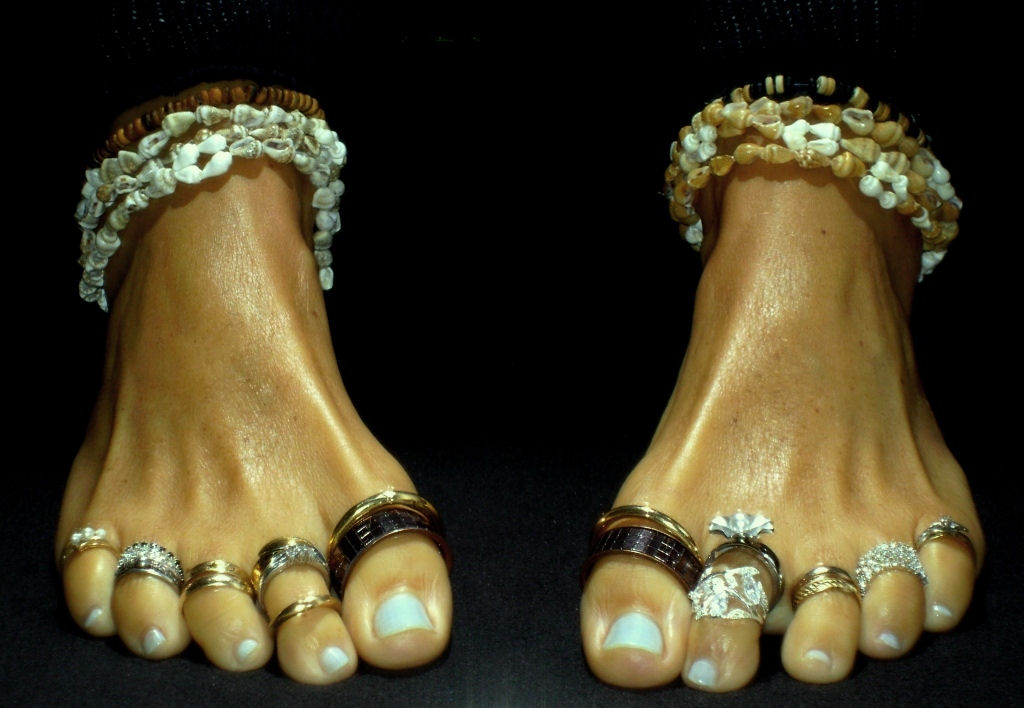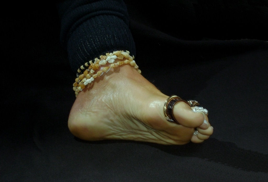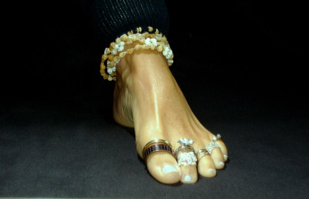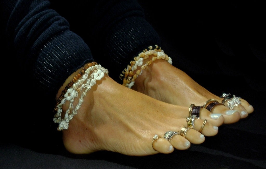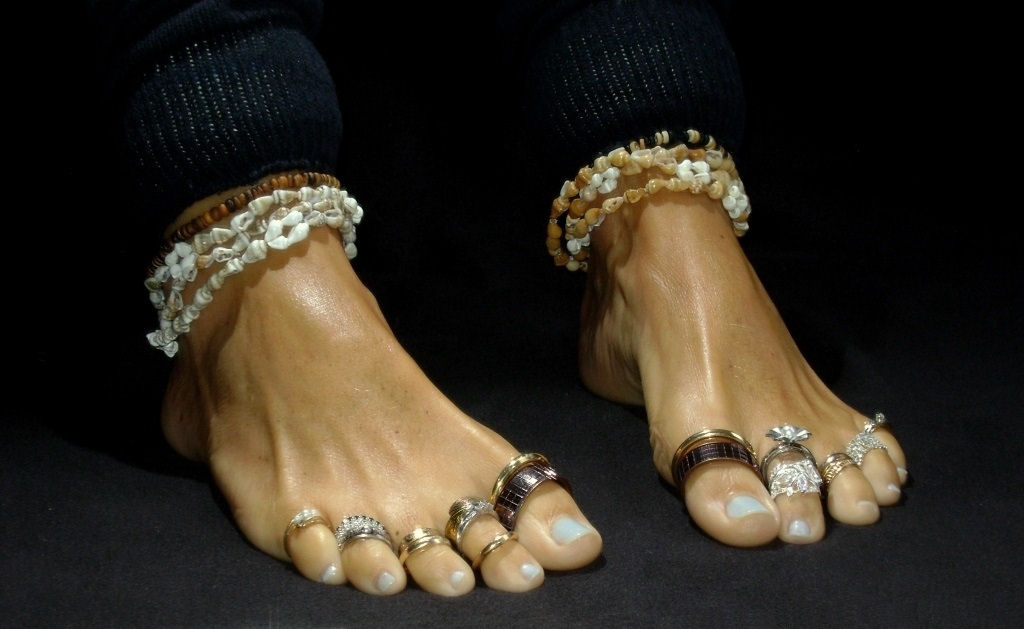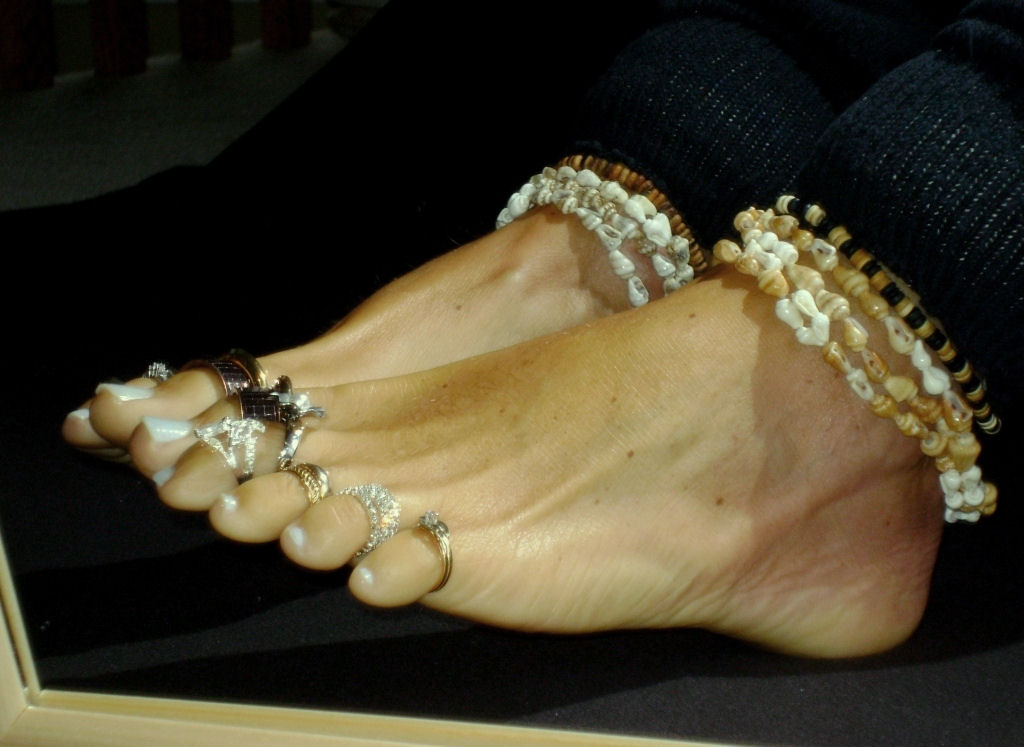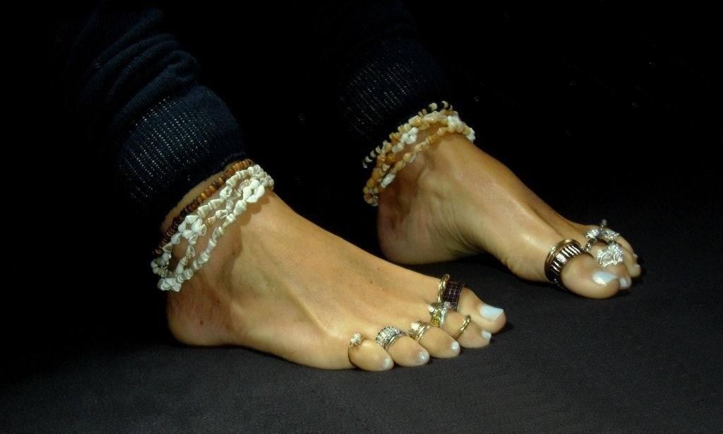 you will love the silver anklets and the middle toe painted in green. I
