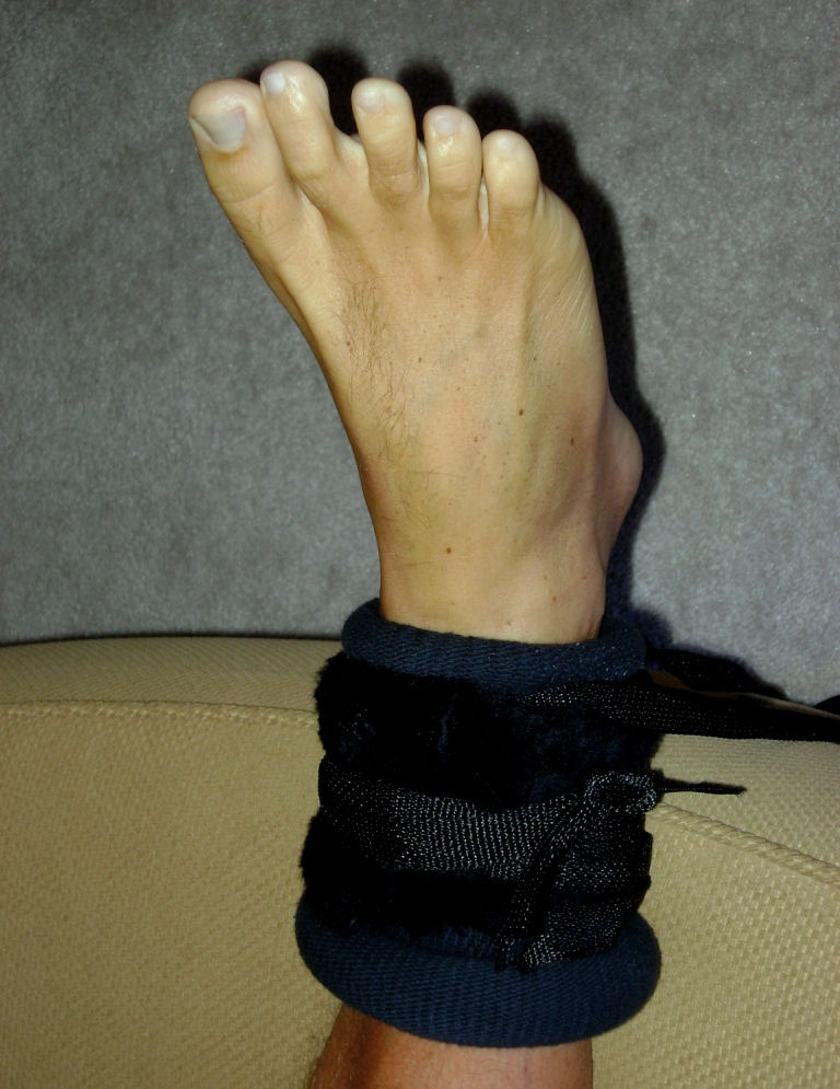 He says, "How about some pictures of my feet in bondage with my Special Lady in control.