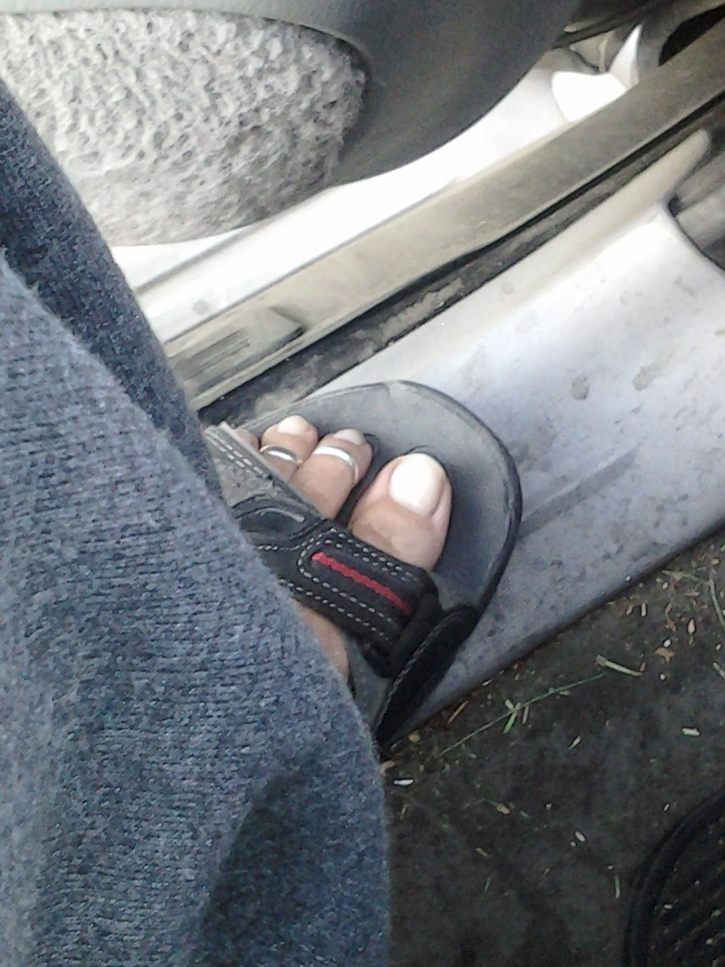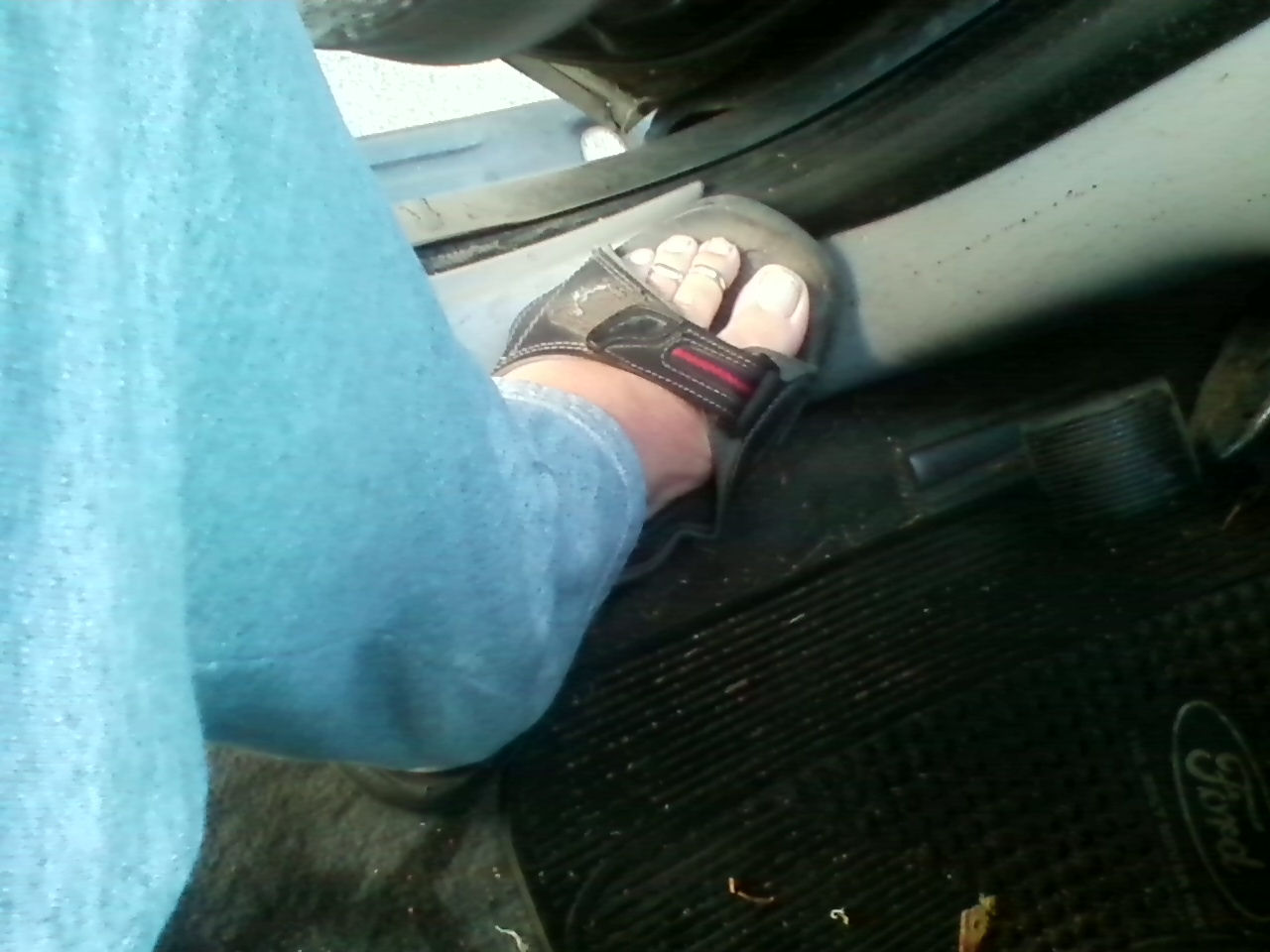 He says, "Wearing my newest favorite sandals on a road trip!"