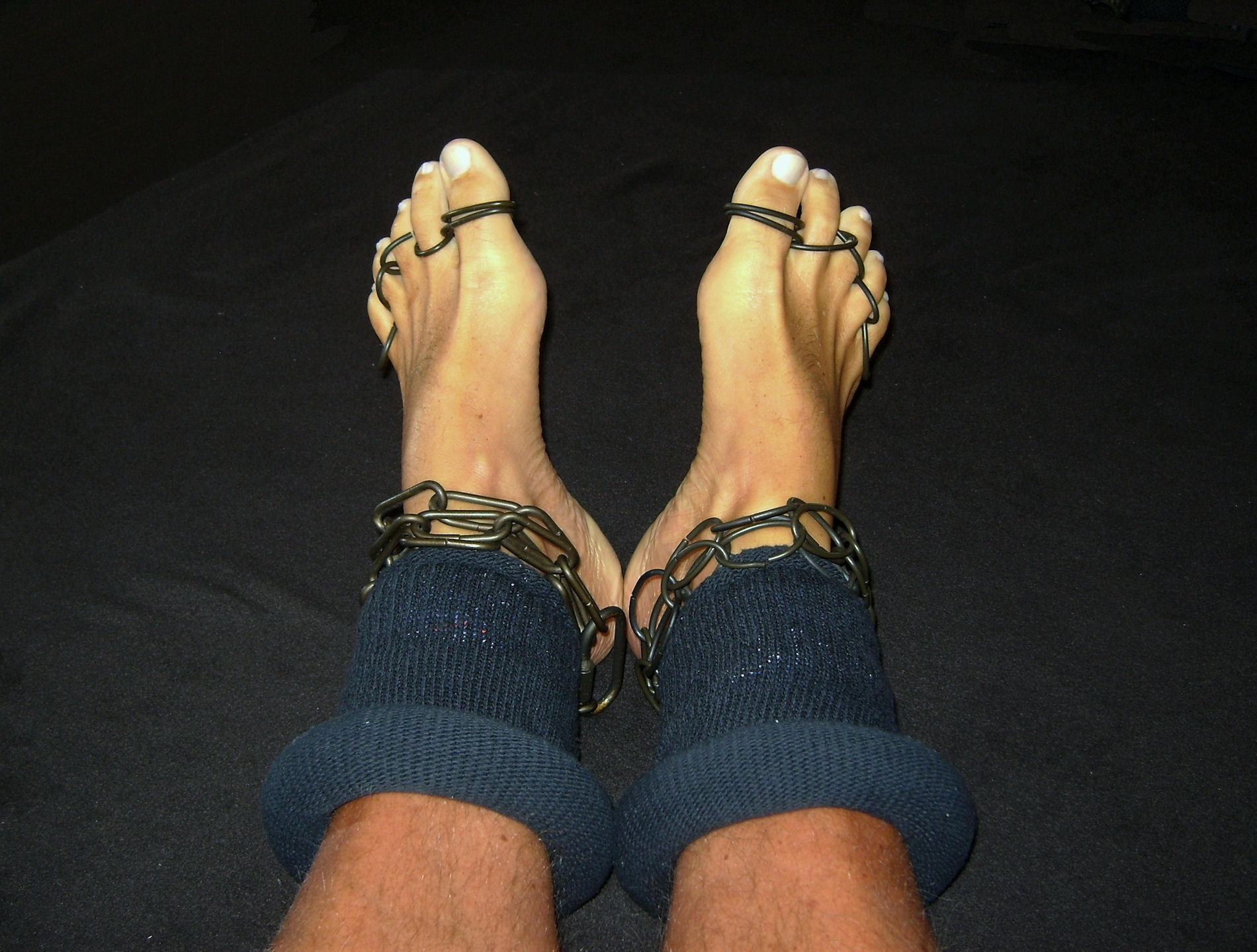 After the first picture, she proceeded to secure my ankles apart, letting my feet hang