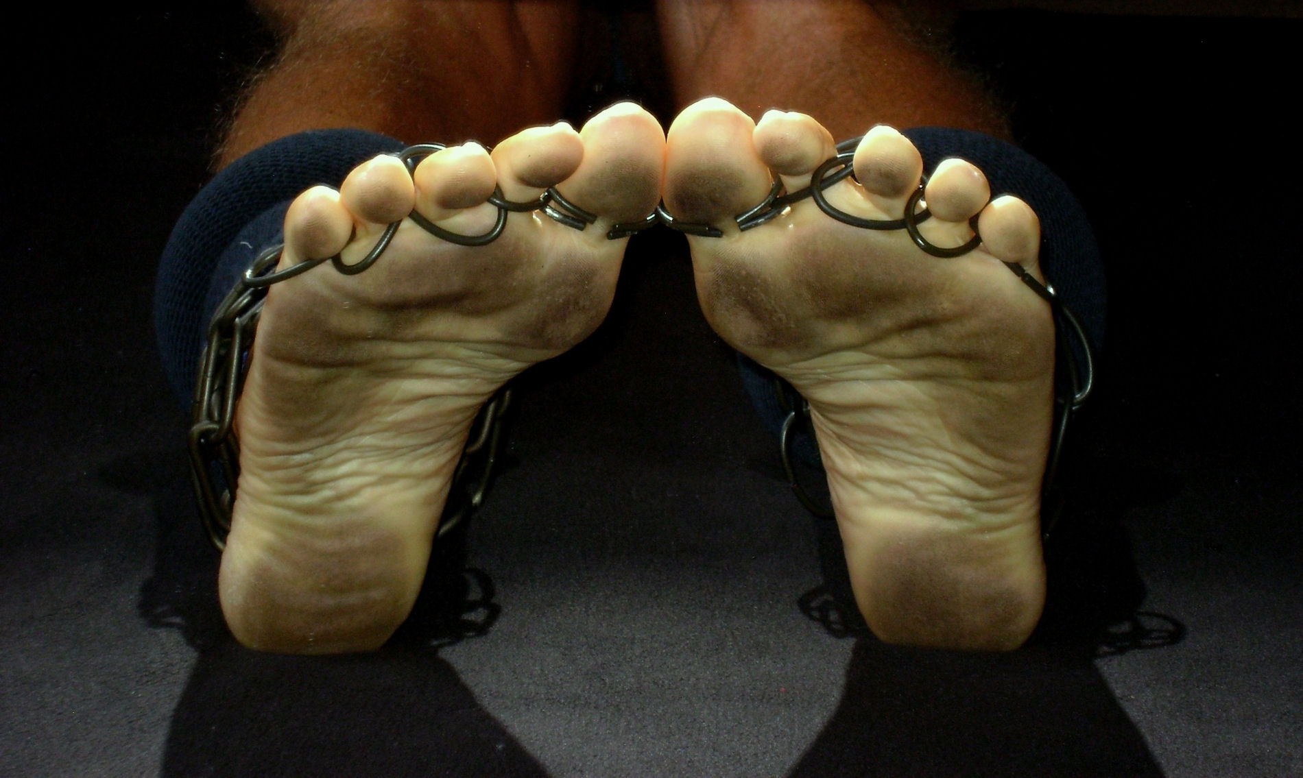 He says, "HAPPY HALLOWEEN!!! Please enjoy these pictures of my chained feet!"