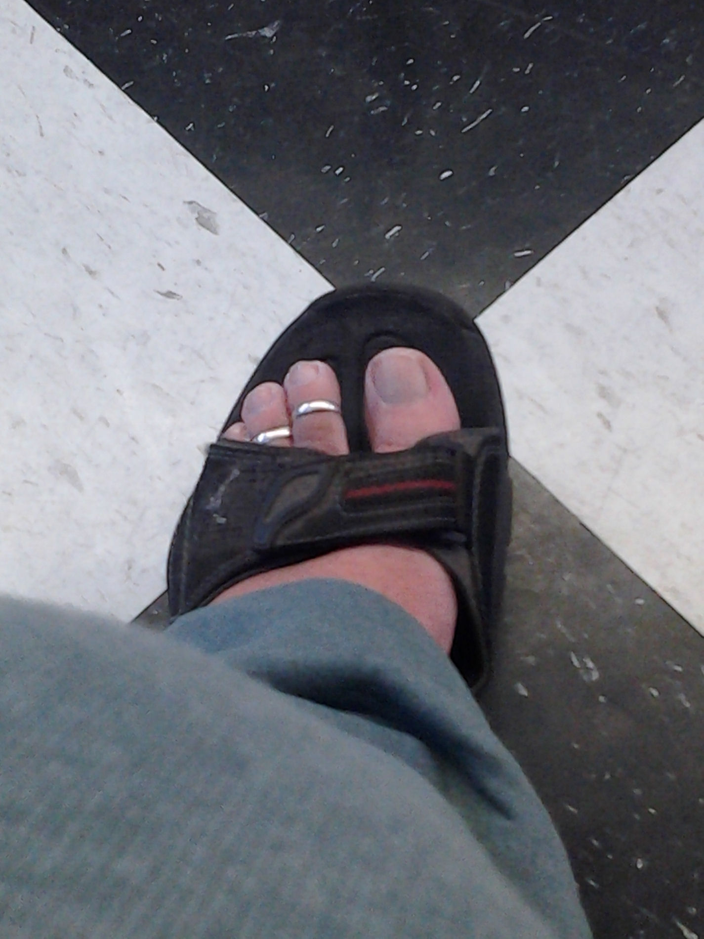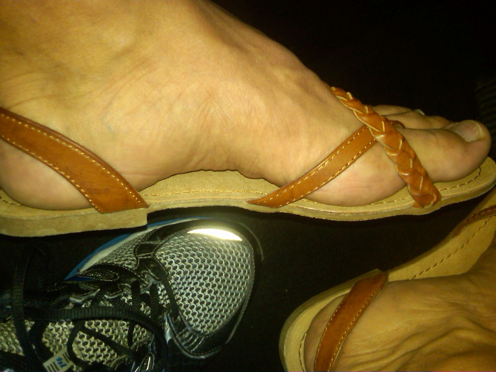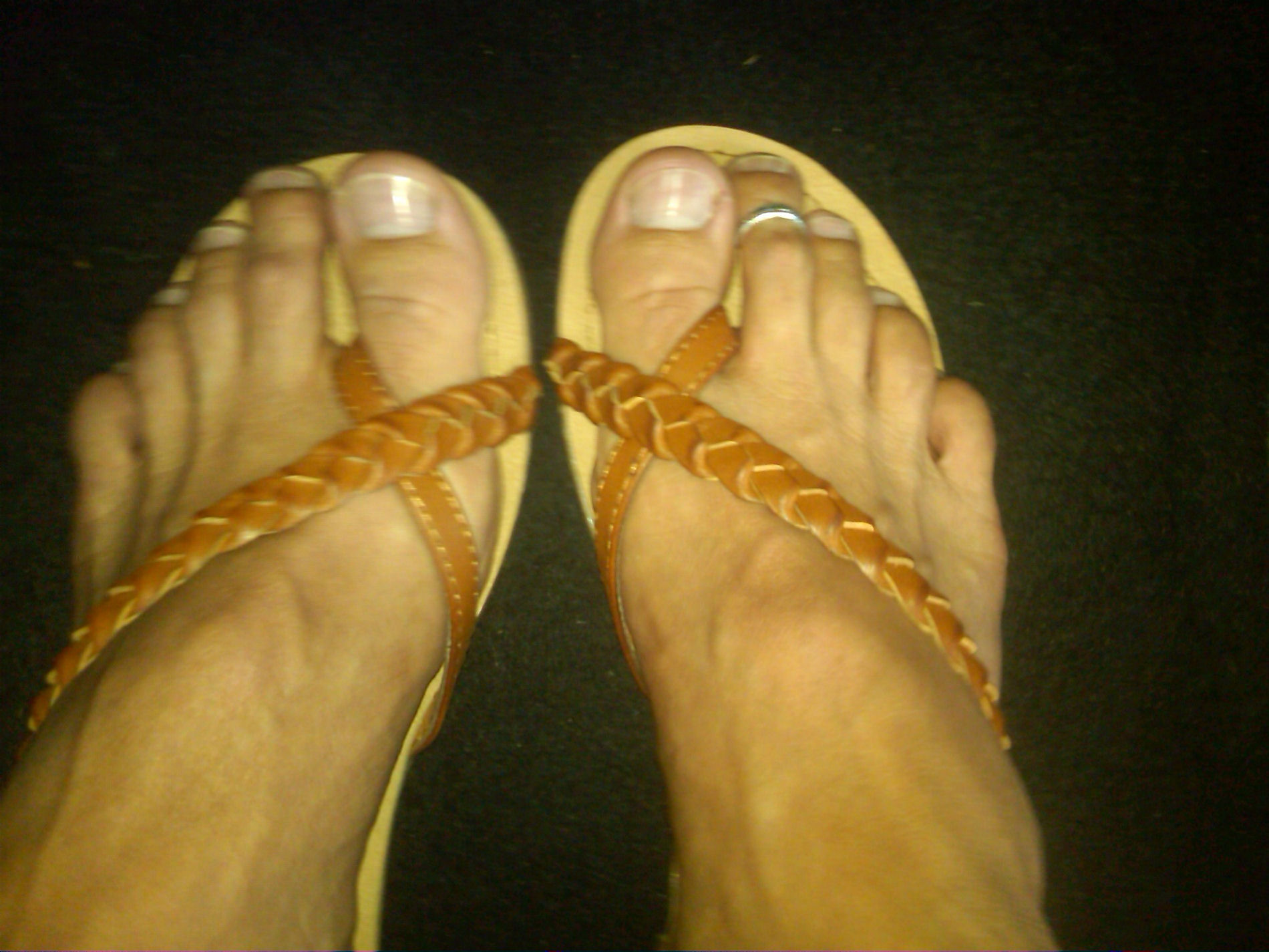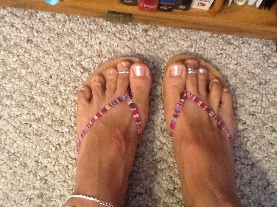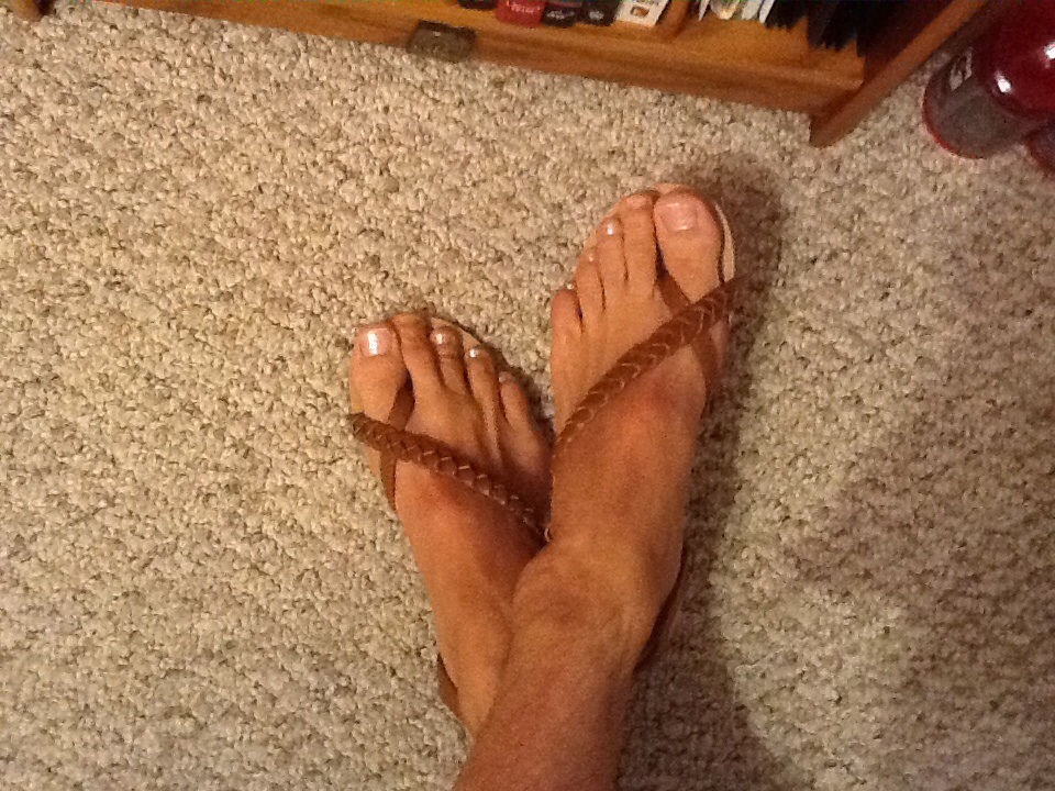 He says, "Here are some more in my new thong sandals ... Hope