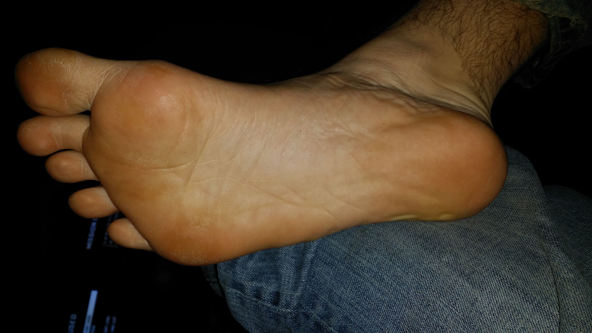 He says, "Hi buddies. I hope you all like my sexy creamy beefy masculine heels, soles, 'n toes.