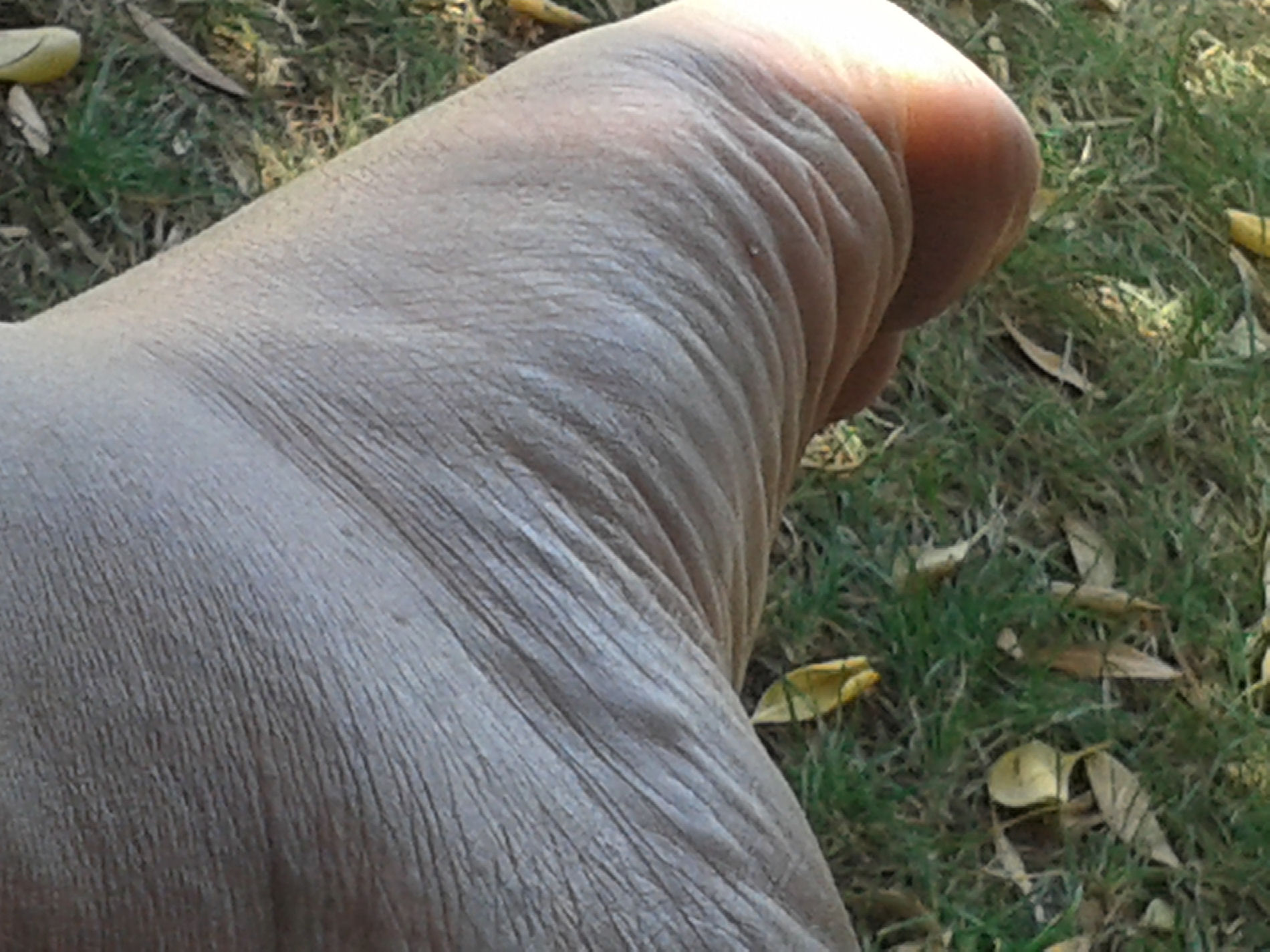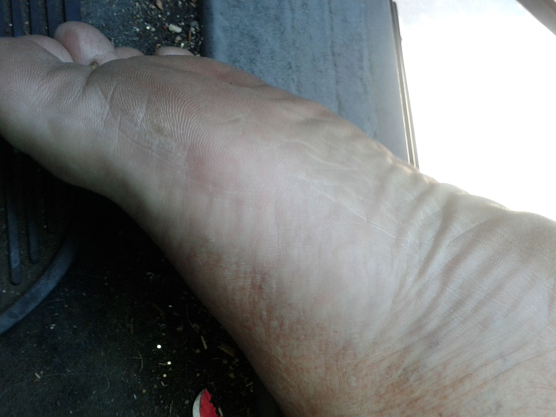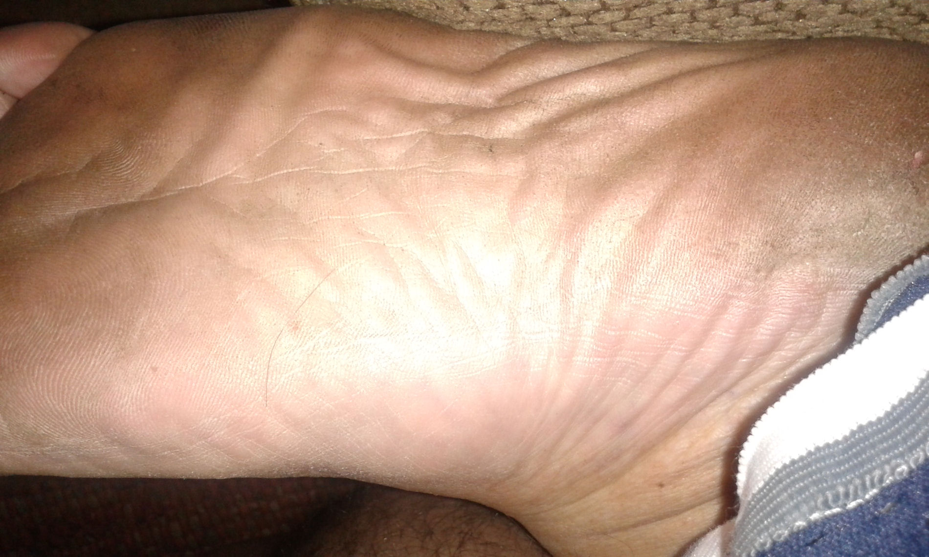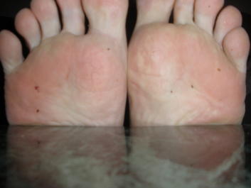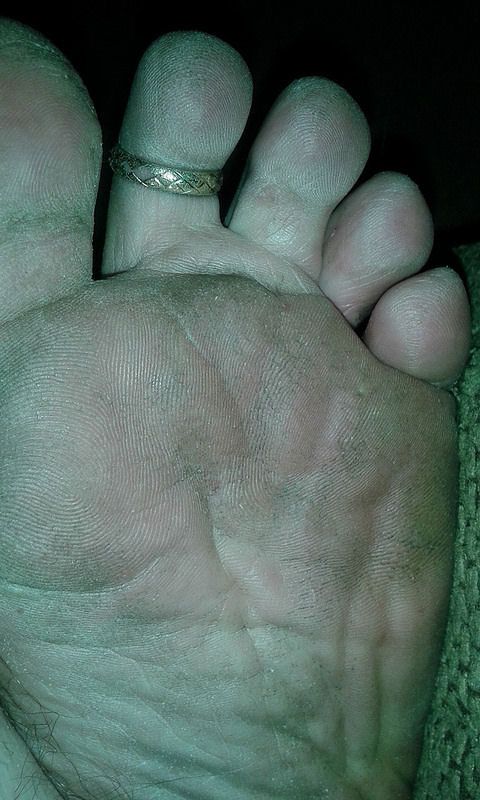 He says, "Here are the last pictures from the ... contrast between the top of my feet and the soles