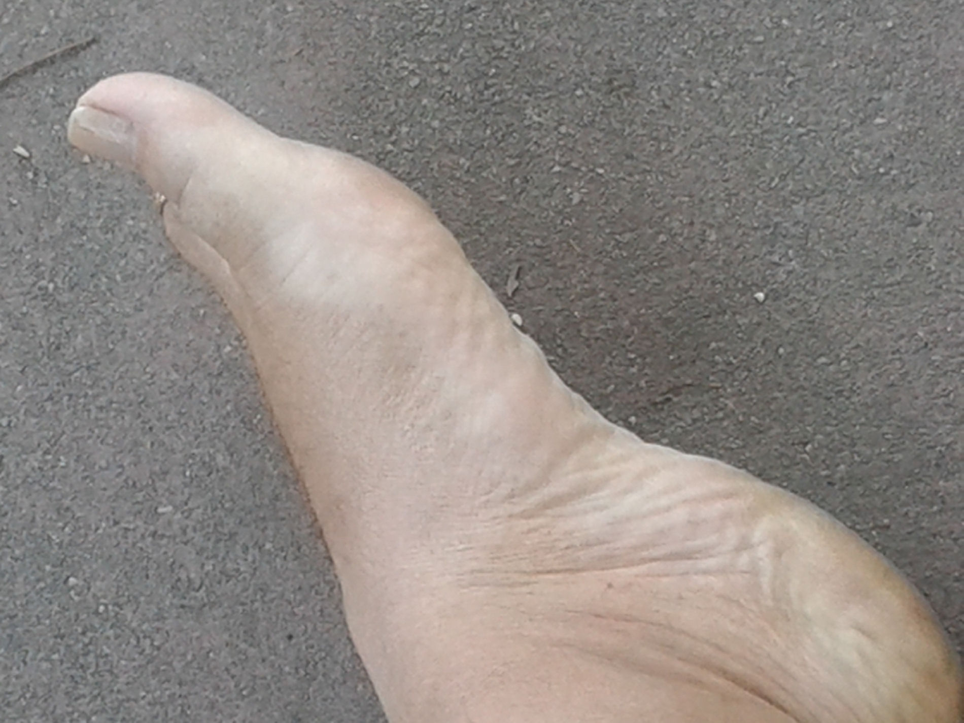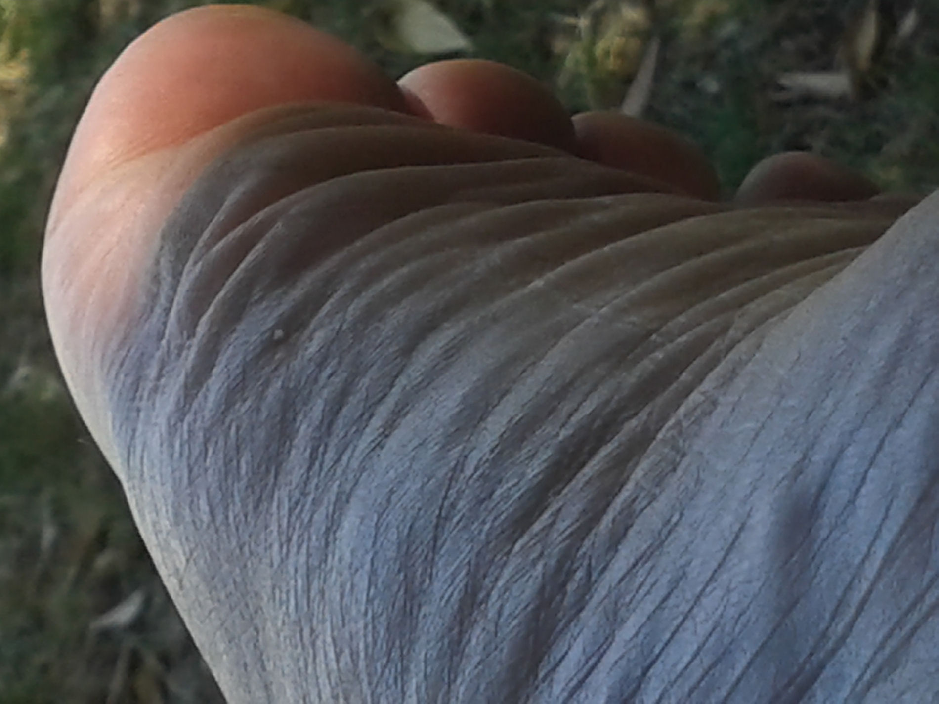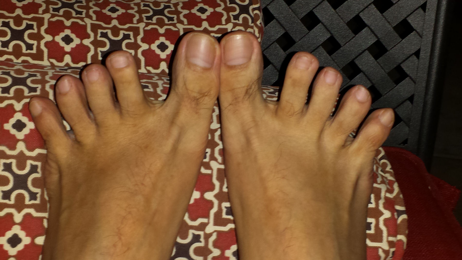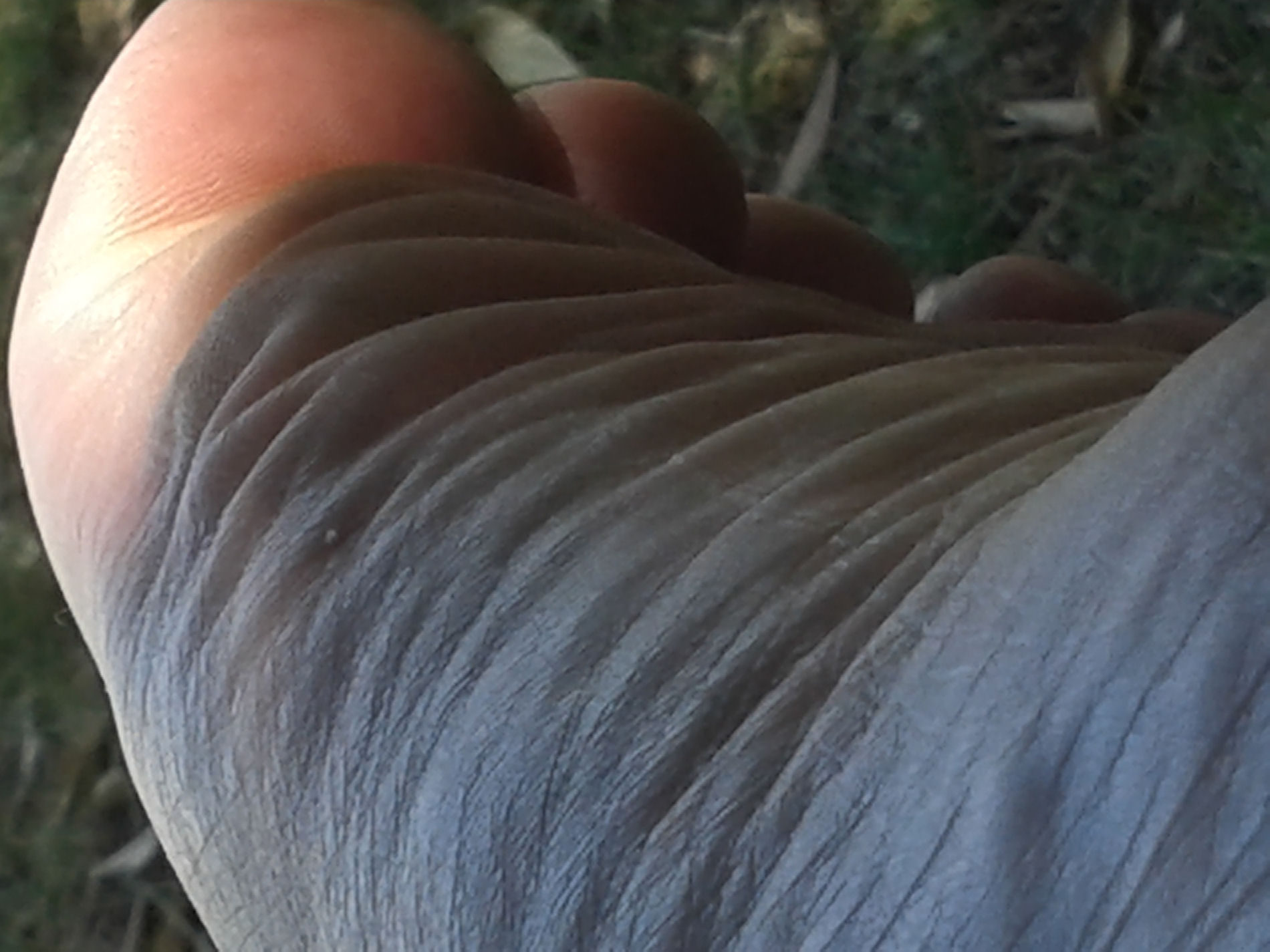 He says, "Here are the last pictures from the ... contrast between the top of my feet and the soles