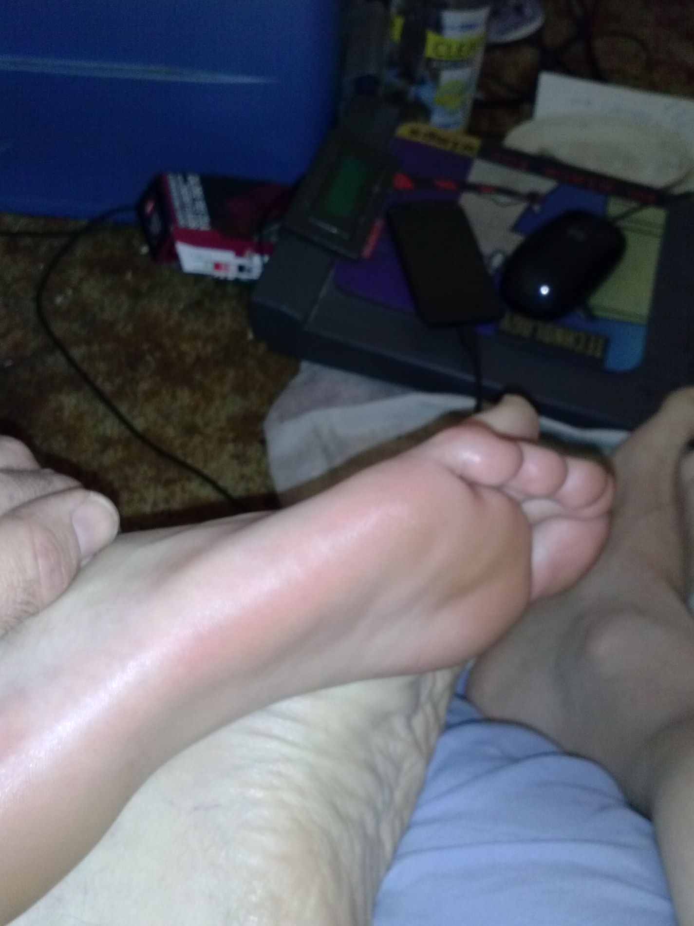this past weekend and he drank too much. He left his feet out for me to take advantage of. "