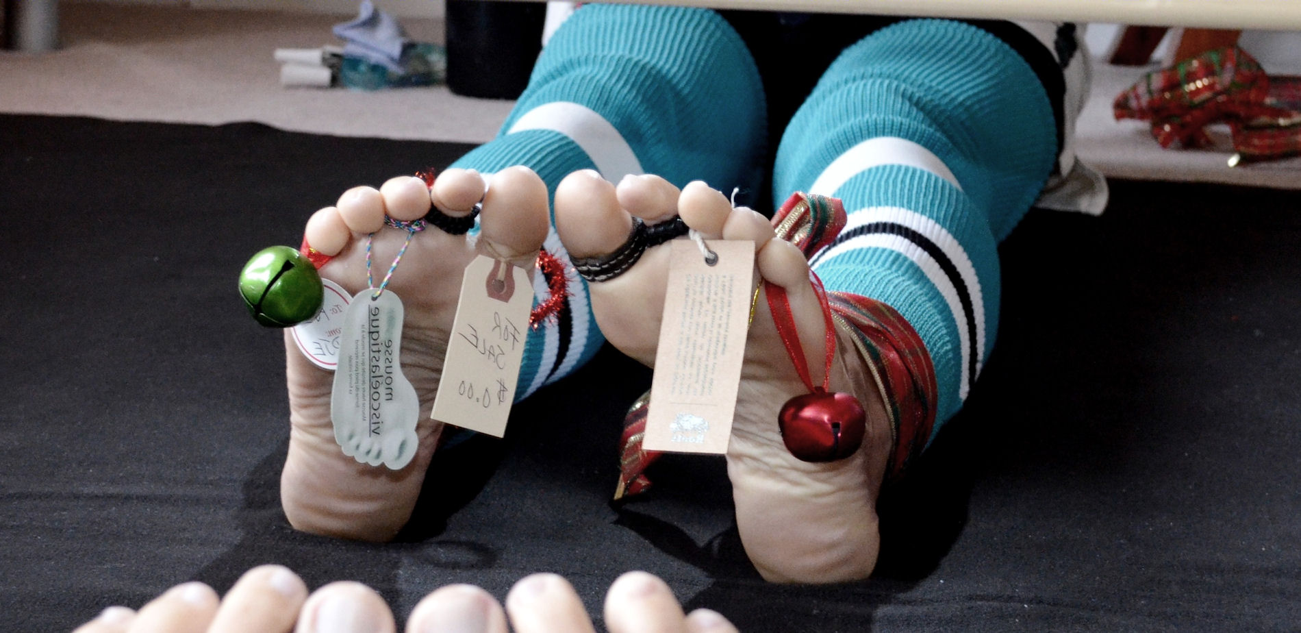 These 9 photos are from Foot Lover who says, "Christmas eve toes n soles."
