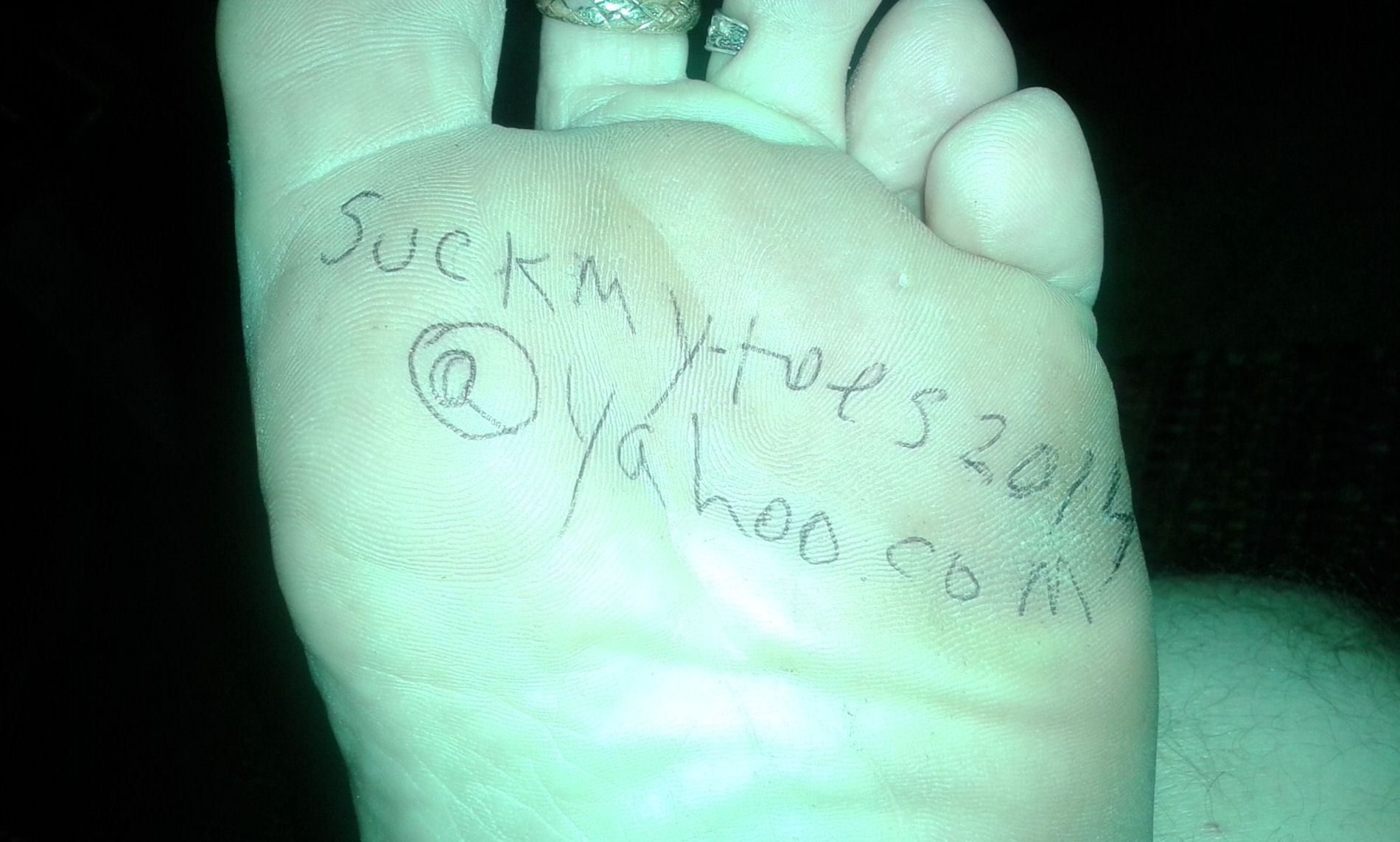 He says, "If you like my feet, let me know at suckmytoes2014@Yahoo.com - thxs