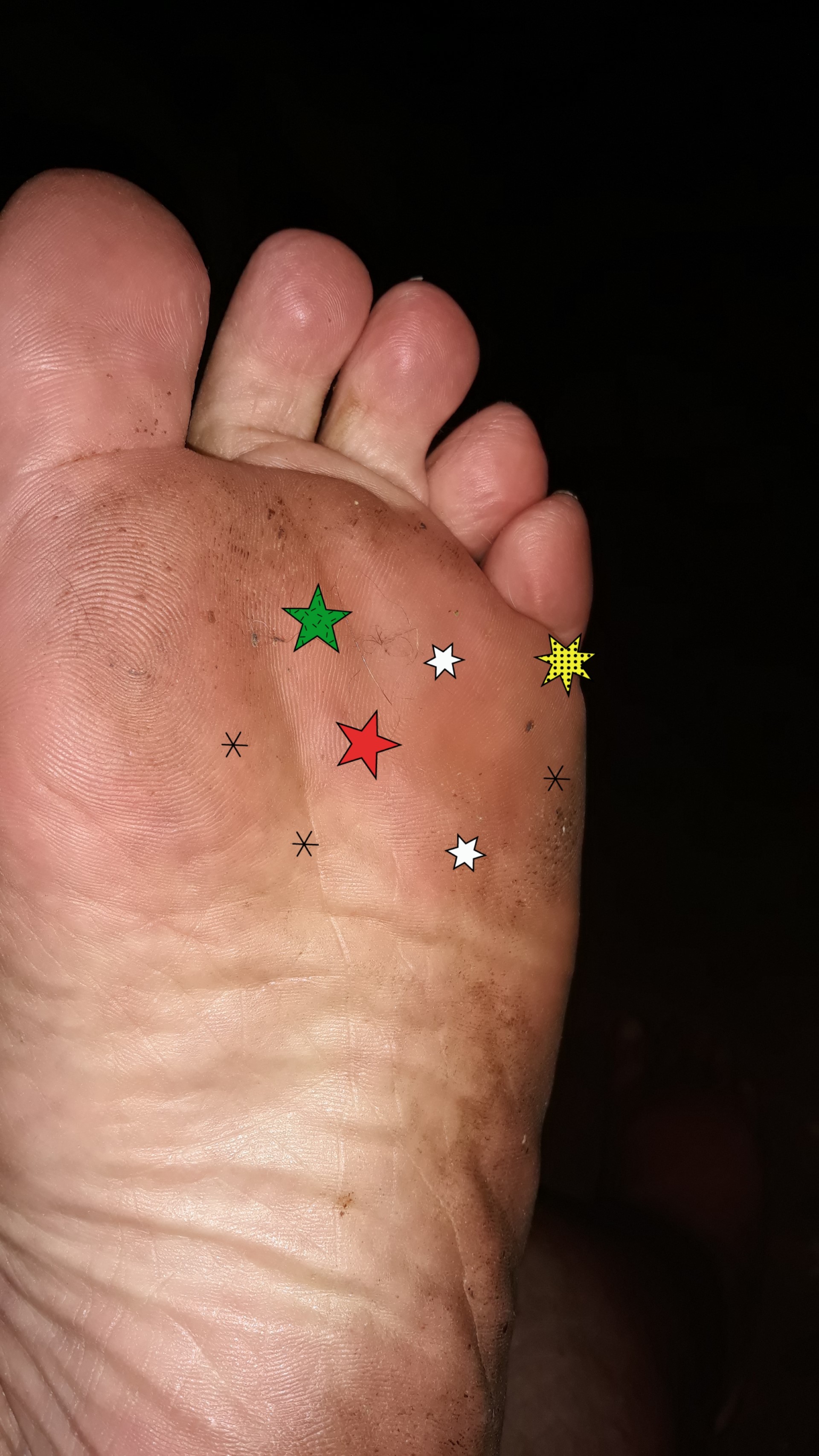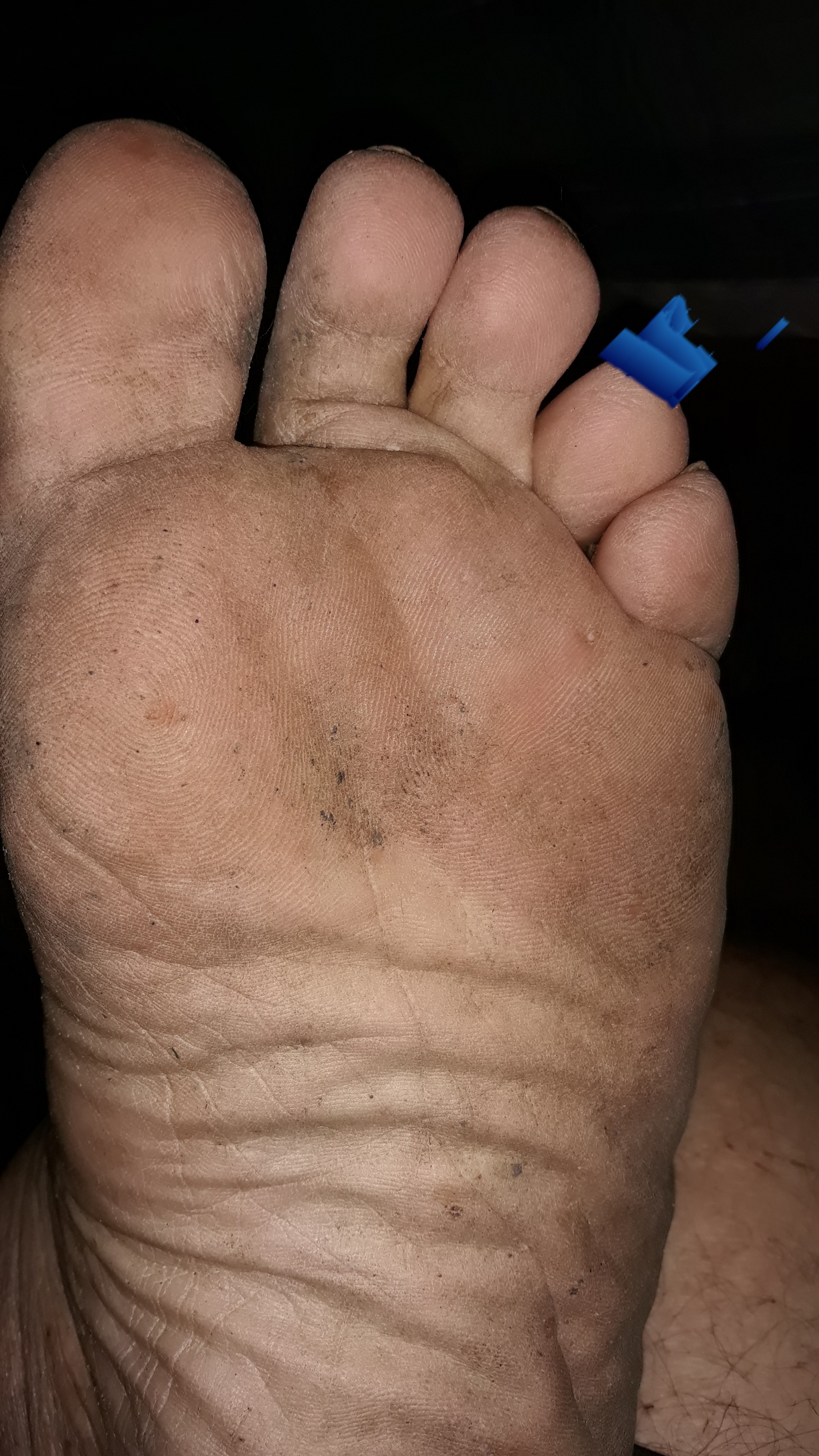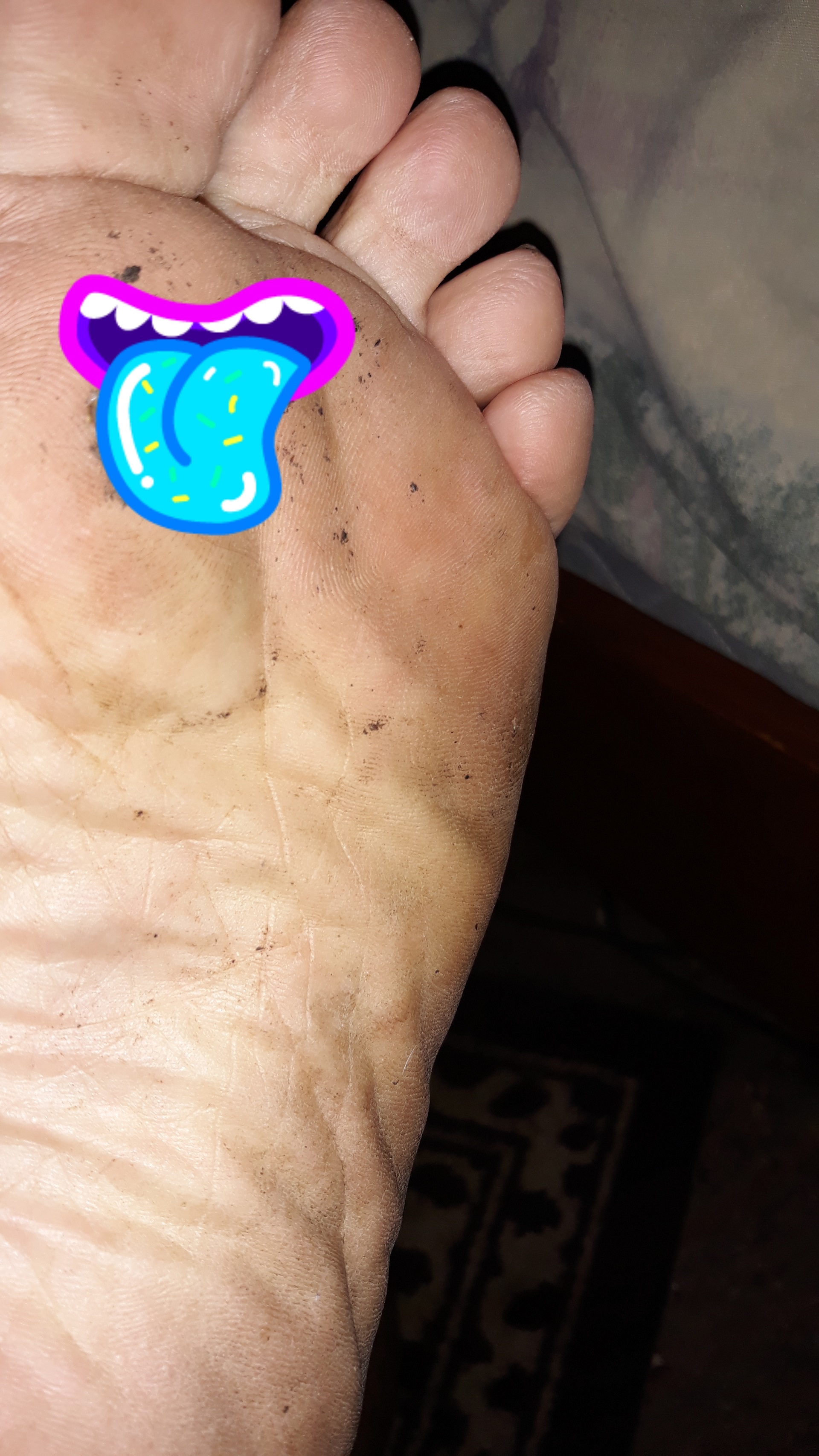 He says, "Plz clean me.👣😜"