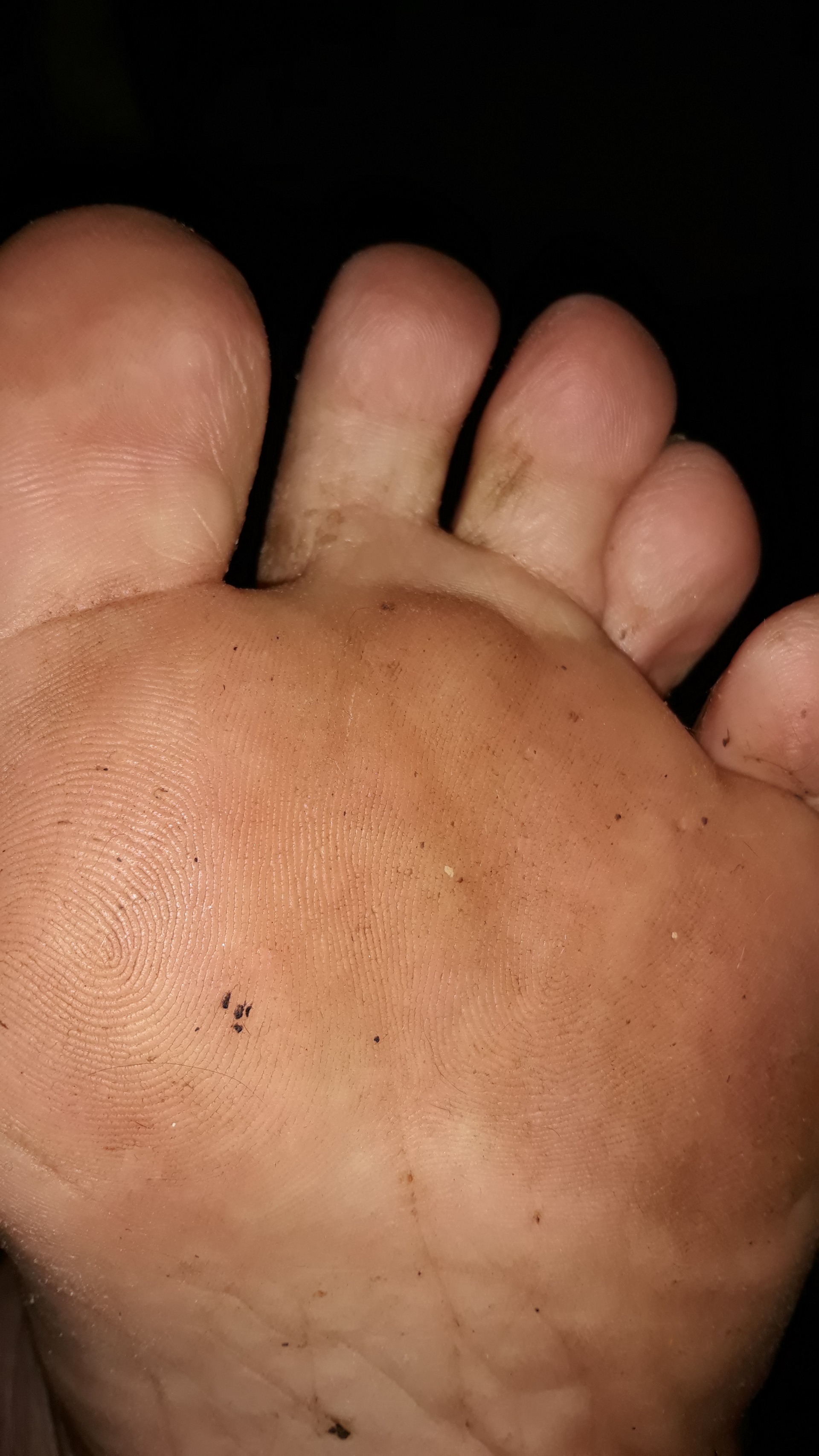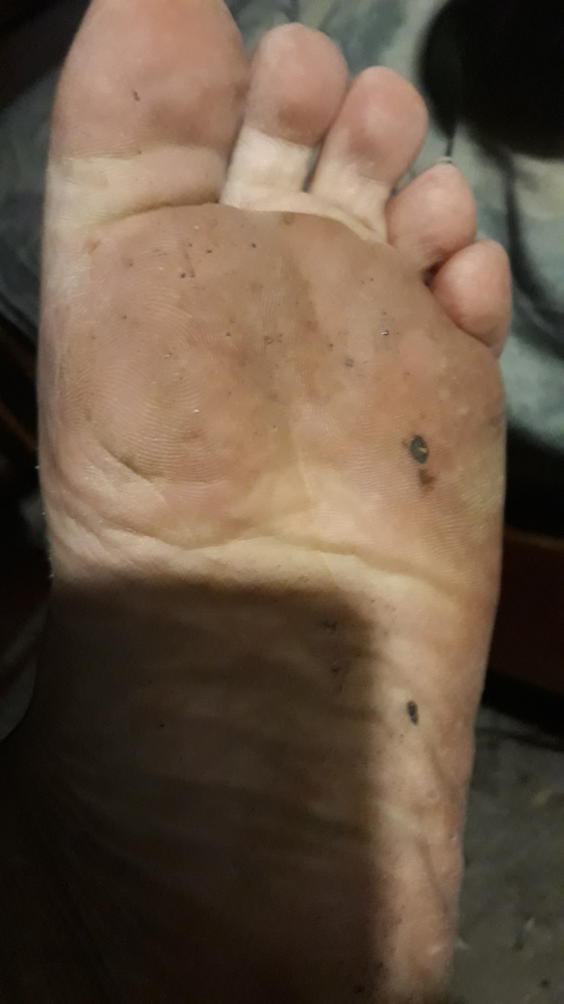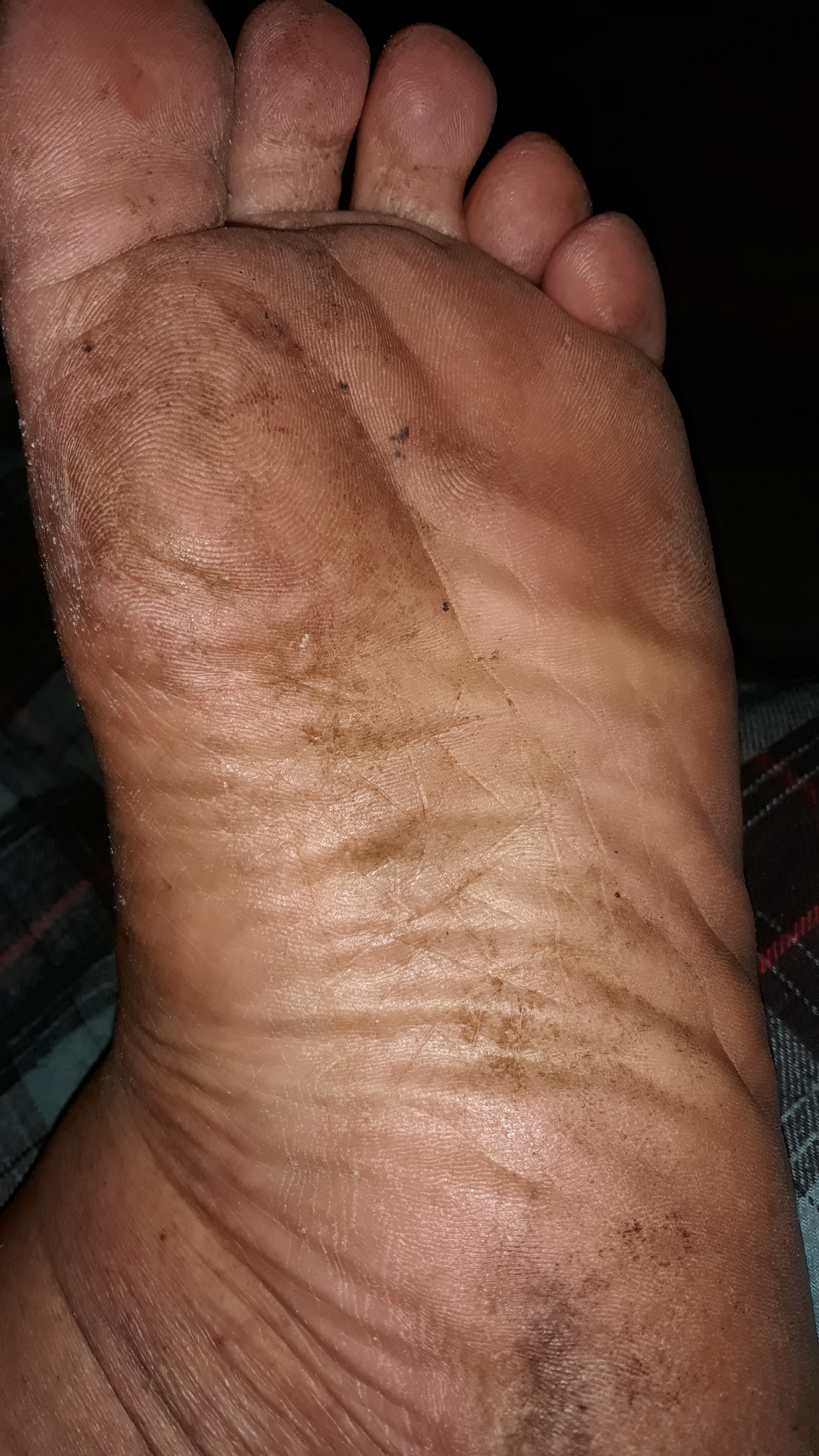 He says, "Plz clean me.👣😜"