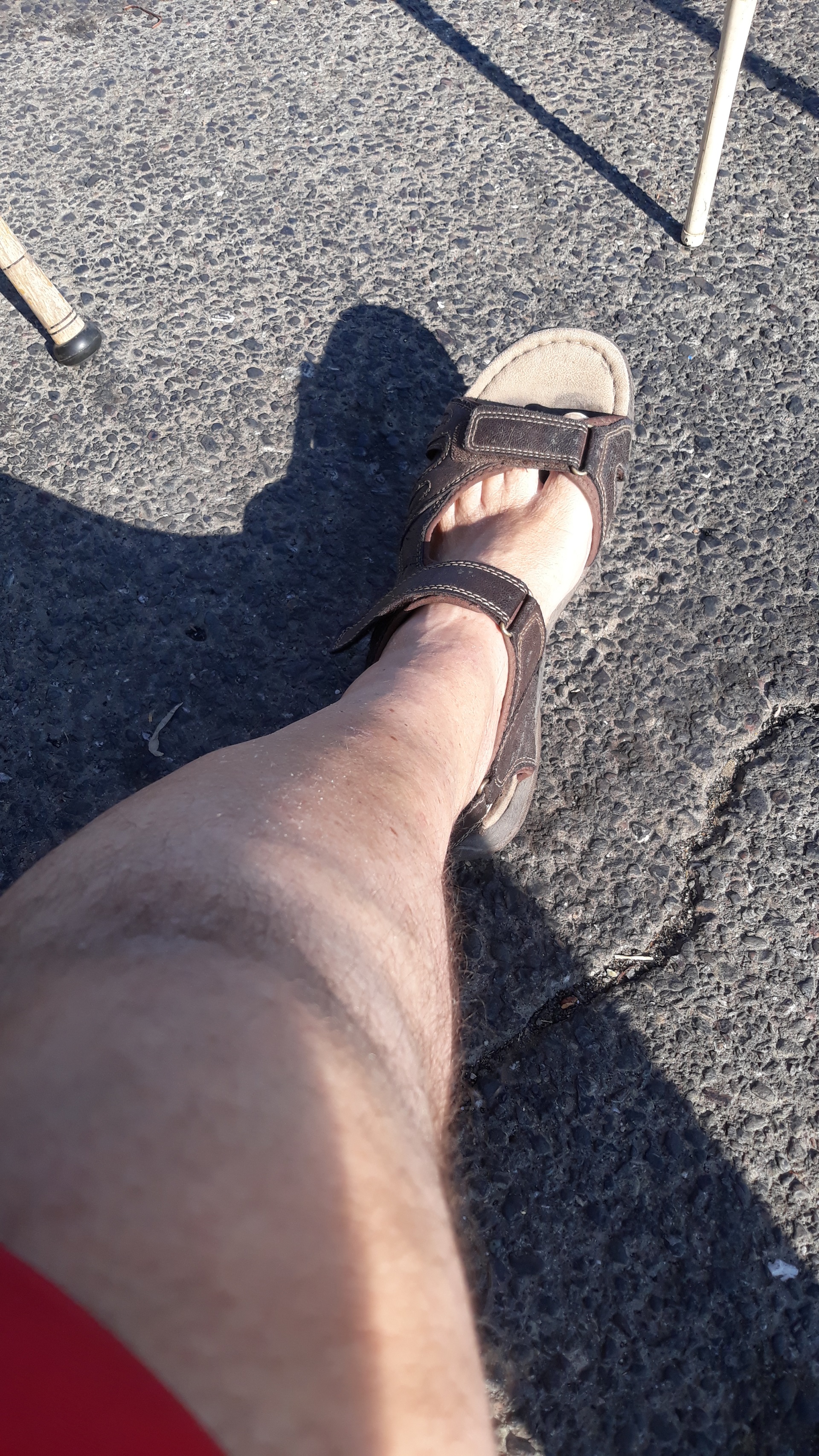 He says, "Keen to hear from other guys into sandals and feet fetish."
