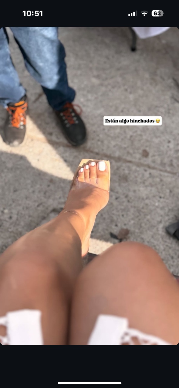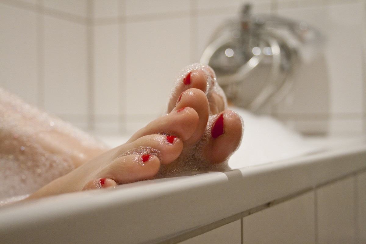 We're told, "Laura was messing around with her toes as she sat on the couch and