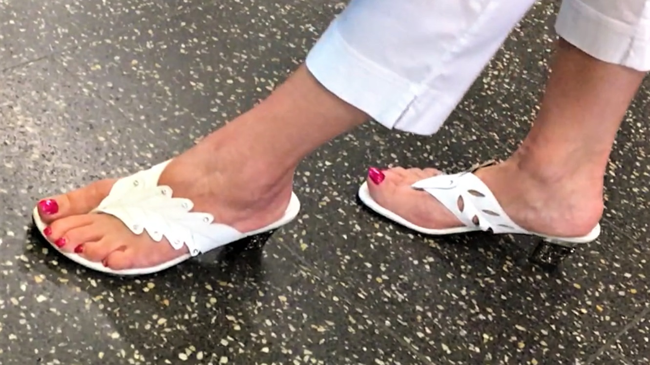 Her sandals were unusual and her feet very cute. Not