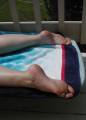 Obviously like a lot of people who visit this site, I too have a foot fetish. Luckily for me, Cal loved feet as much as I do, and Cyndi openly indulged his fetish. Her feet are very similar to the ones shown below. As you can imagine, just having them inches from my reach caused many a hard-on. I lived next door to them, and if they had their bedroom's blinds opened, I could peek inside from my balcony, which was immediately next to mine. Once in a while, Cyndi would lay out on the balcony, so I could discreetly peek at her on the balcony from my place inside, which I often did. As you can see from the photos below, I couldn't help but to be very horny for her feet.