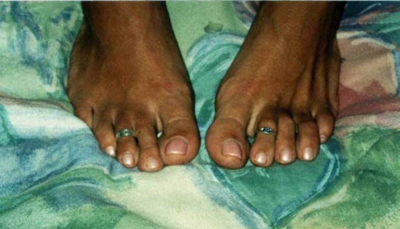 The 2nd photo shows another close-up of toes with toe rings.