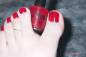 Red toenail polish over no polish!