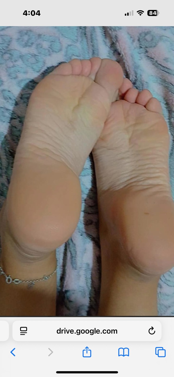 He says, "My wife's soles. She's Latina, size 8. She has a small mole aka Lunar in Spanish.