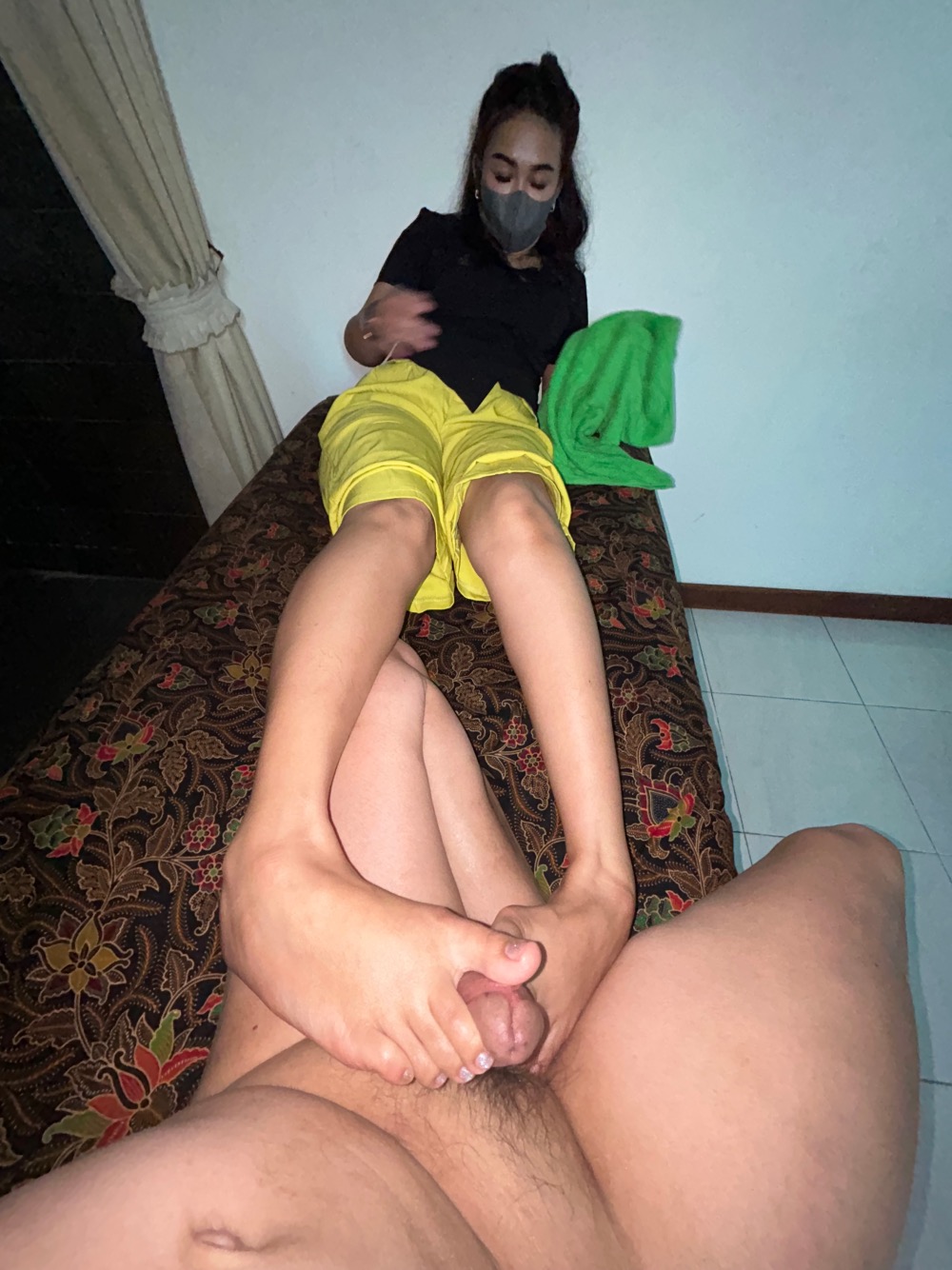 This video is titled, "Custom Request Footjob Cumshot!"