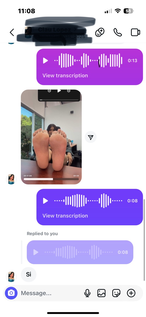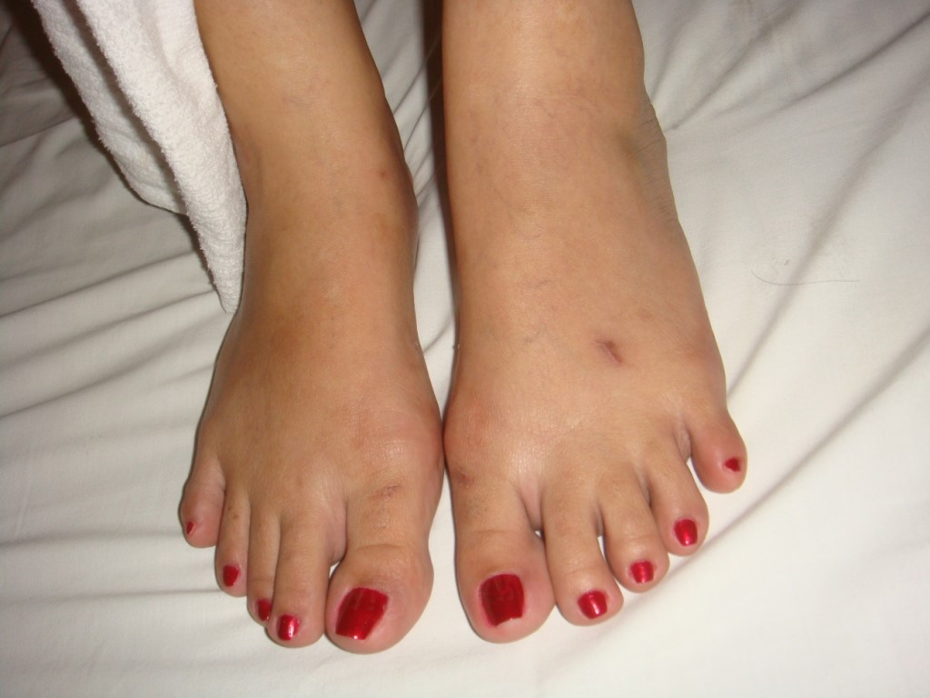 other guys look at her feet. Even though she's a chubby girl, she still gets looks because of her feet."